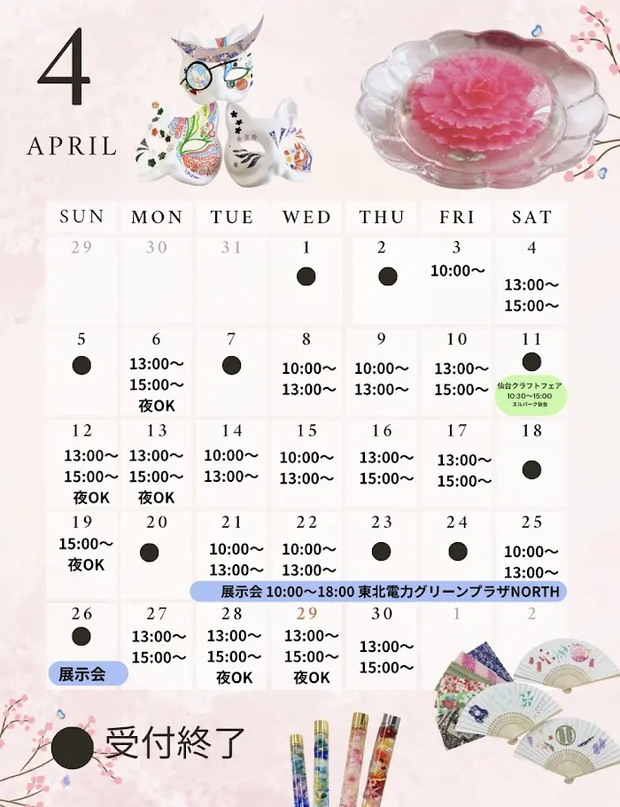 【ご予約方法】 カレンダーの「⚫️」以外は受付可能です。 お申し込みは DM または 公式LINE より、お気軽にメッセージをお送りください📩✨
